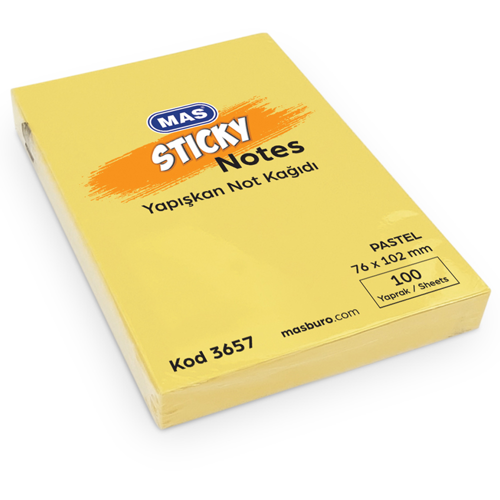 Mas Yapışkanlı Not Kağıdı 100 Syf 76x102 Pastel Sarı 3657