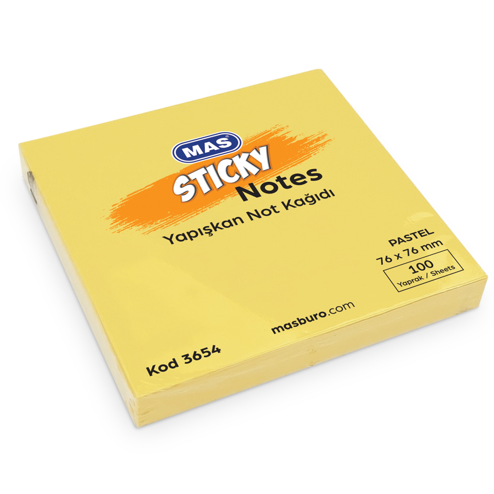 Mas Yapışkanlı Not Kağıdı 100 Syf 76x76 Pastel Sarı 3654