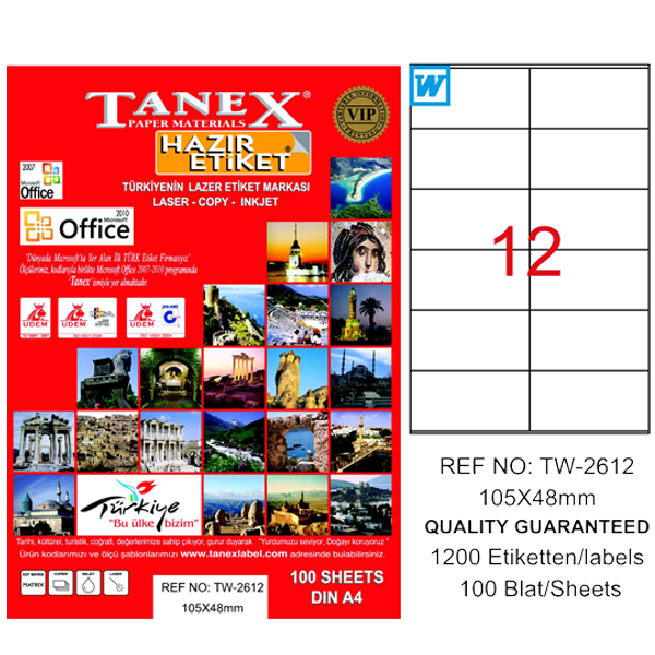 Tanex Laser Etiket 100 YP 105x48 Laser-Copy-Inkjet TW-2612